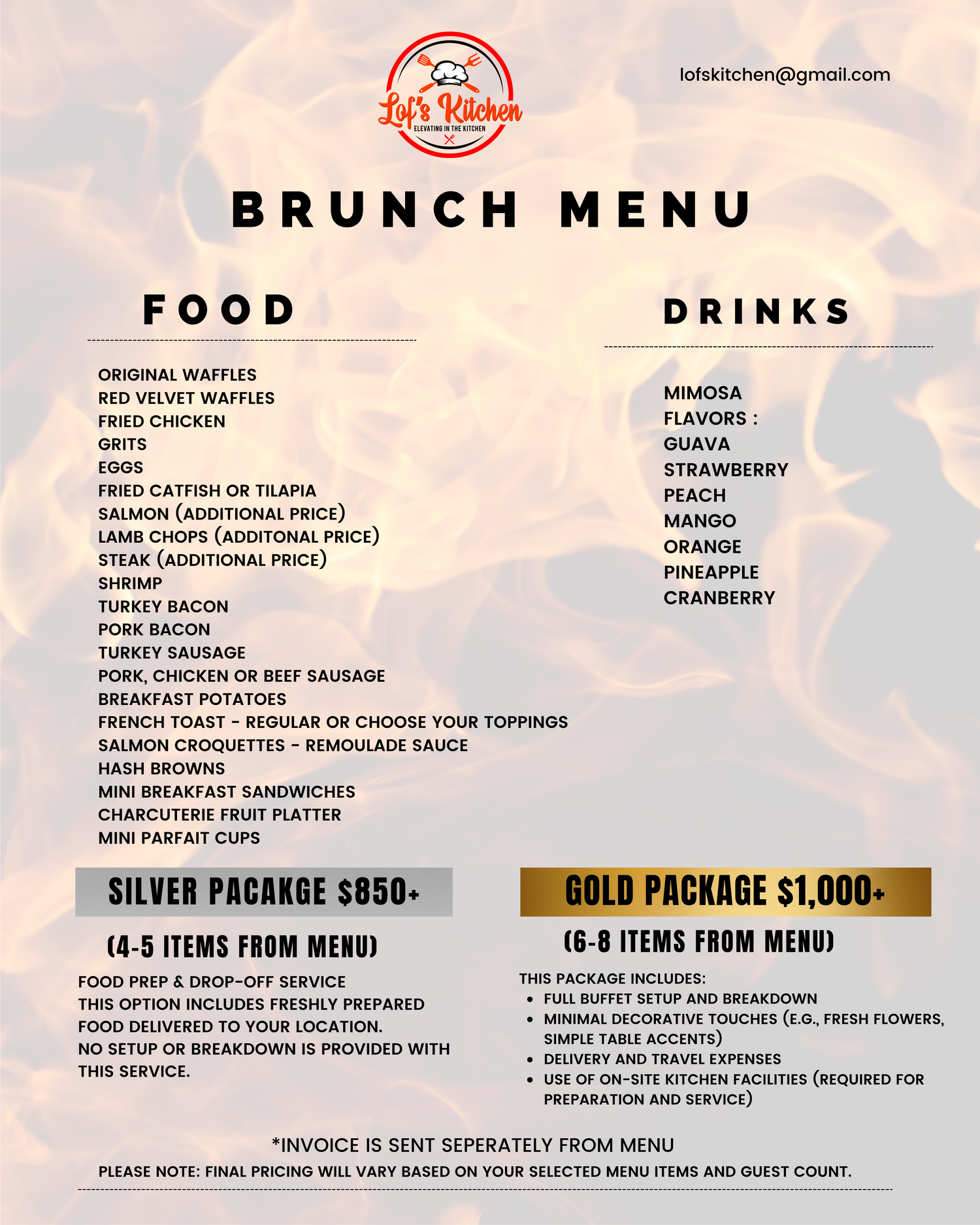 Whether it’s weddings, bridal showers, or corporate events and more. — Lof’s Kitchen offers custom menus, themed décor that will leave a lasting impression.